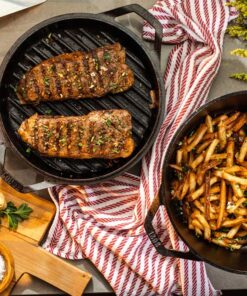 This chef-inspired dutch oven is a dream for any home chef! The smart design features a lid that doubles as a grill pan, which can work together with the dutch oven to create an entire meal. Steak frites, anyone? The naturally seasoned cast iron cooking surface provides great heat retention for all your favorites, from sourdough bread to homemade curry. That’s magic!