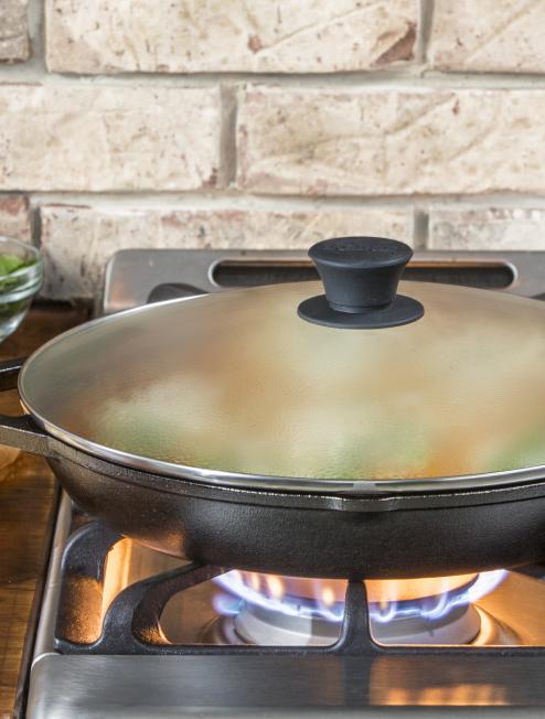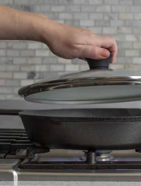 Lock in moisture (and flavor!) with a glass lid that perfectly fits your favorite piece of cookware. Great for braising and simmering!Â