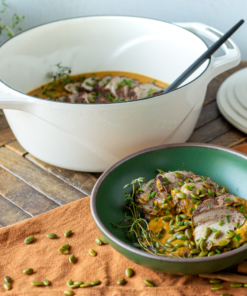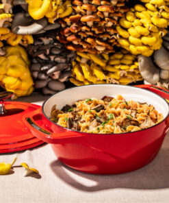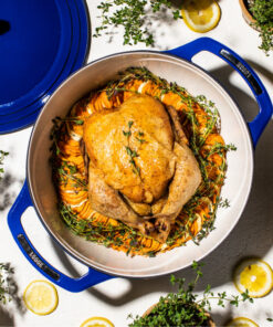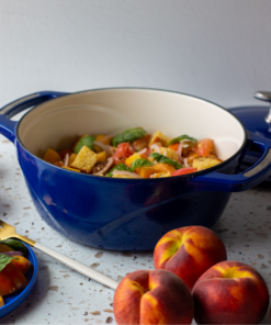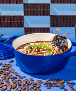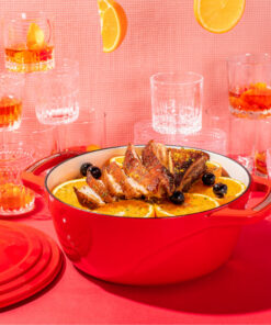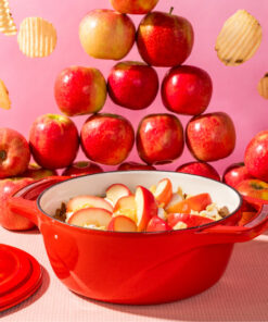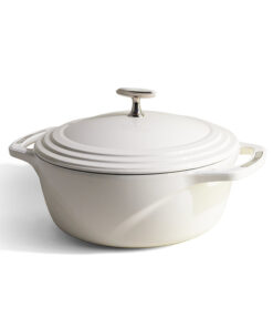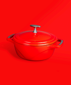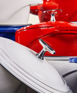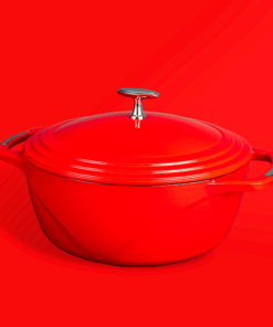 This colorful collection of enameled cast iron is the first of its kind to be made on US soil. Inspired by the best in American design, this piece will help you bring all of your favorite dishes to the table. It takes everything you love about cast iron, like great heat retention and durability, and combines it with an enameled surface that can withstand acidic ingredients. Let’s hear it for Sunday sauce!